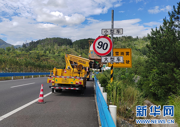 图为更换限速标志。新华网发