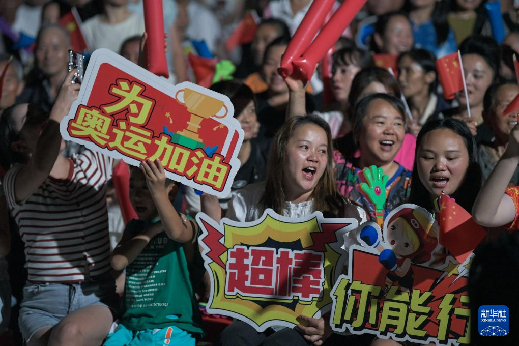 8月10日,在贵州省黔南布依族苗族自治州贵定县昌明镇文江村,乡亲们在收看比赛直播时为吴愉加油鼓劲。新华社记者 杨文斌 摄