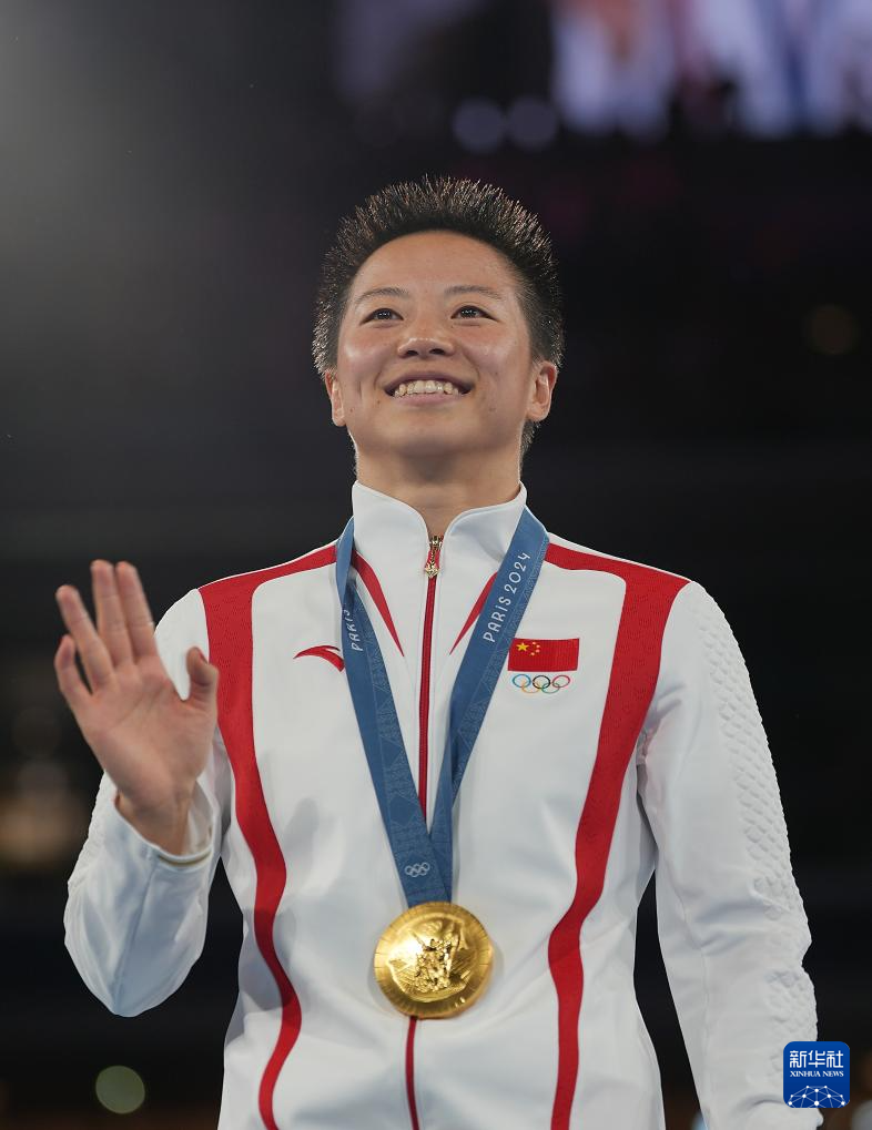 图为吴愉在巴黎奥运会拳击项目女子50公斤级颁奖仪式上(8月9日摄,资料)。新华社记者 江文耀 摄