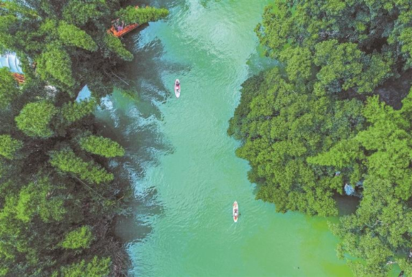 曾几何时,由于工业生产排污、大规模网箱养鱼、发展旅游忽视环保等原因,红枫湖水质一度降至劣Ⅴ类,水环境受到严重威胁。为保护红枫湖生态,贵阳市拆除红枫湖流域总面积达11万平方米的176家畜禽养殖场、拆除红枫湖700余口固定式网箱和两家投饵养殖场,全面禁止网箱养鱼和投饵养殖。经过多年治理,红枫湖水质长期稳定在Ⅲ类及以上,取水口水质稳定在Ⅱ类及以上,且逐年稳中有进。今年6月,红枫湖等11条(个)河湖水库入选2024年贵州美丽幸福河湖。