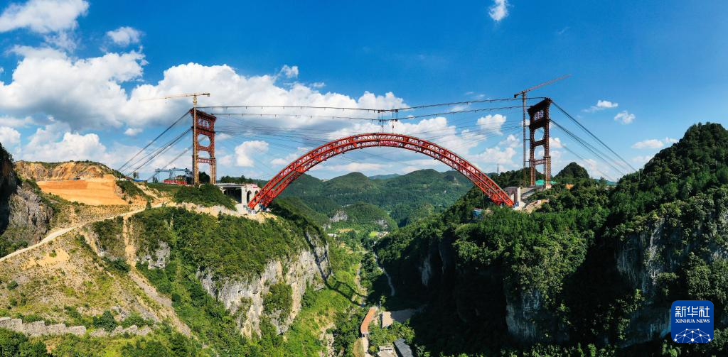8月21日,由贵州桥梁集团承建的贵阳至平塘高速公路马场河特大桥主拱顺利合龙。马场河特大桥位于贵州省贵定县盘江镇马场河村,大桥全长381.5米、主跨260米,桥面设计为双向六车道,是G7522贵阳至北海高速公路贵阳至平塘段控制性工程。(记者:杨文斌 报道员:李佳隆)