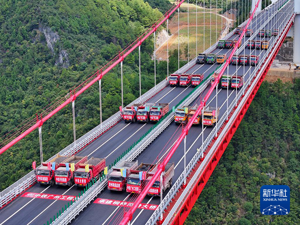 8月24日,由中铁广州局承建的贵州金(金沙)仁(仁怀)桐(桐梓)高速桐梓河特大桥开始进行荷载试验,数十辆大货车按照精密设计的方案停放在特定位置,模拟极端荷载下的桥梁状态,全面评估桥梁工作性能,确保其安全无虞。