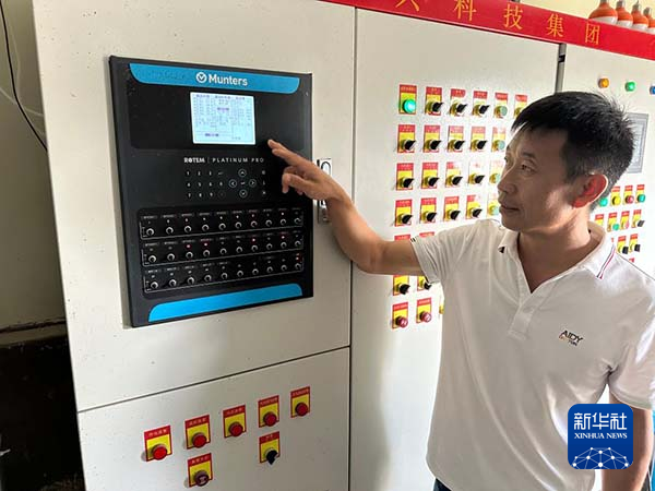8月25日,在贵州省兴仁市城南街道保驹村,蛋鸡养殖基地经营者刘天涛检查智能育雏室的情况。新华社记者 李凡 摄