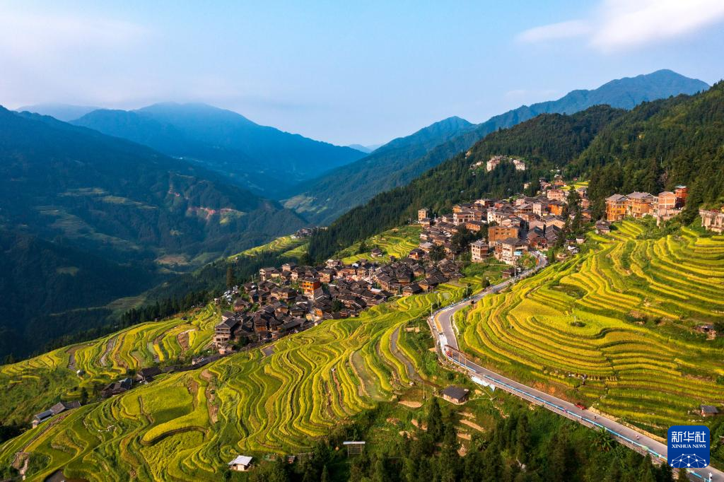 初秋时节,位于贵州省黔东南苗族侗族自治州从江县大山深处的加榜梯田水稻陆续成熟、线条分明。青山环抱着梯田,苗寨点缀其间,在不同光线下呈现出不同色彩,一幅幅秋日丰收图景在山间铺展开来。