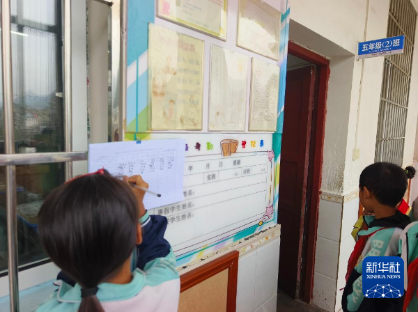 9月11日,织金县八步街道第二小学5年级2班的学生在选择当天的玩耍项目。新华社发(受访者供图)