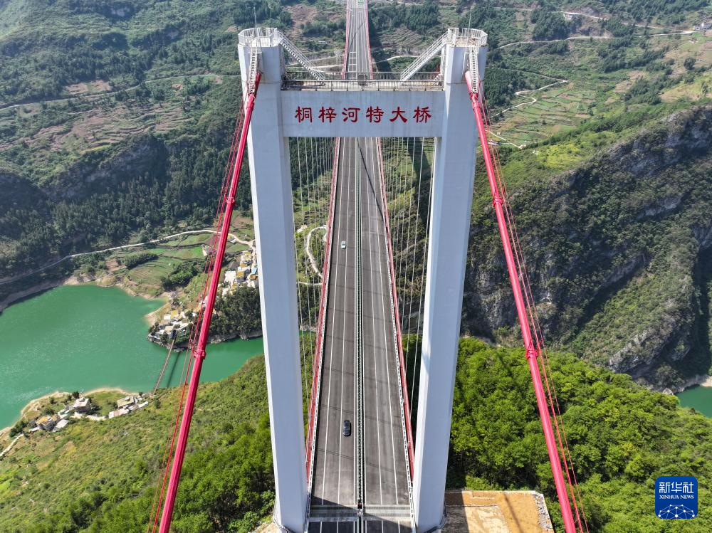 9月13日,车辆行驶在金仁桐高速桐梓河特大桥上(无人机照片)。新华社记者 刘续 摄