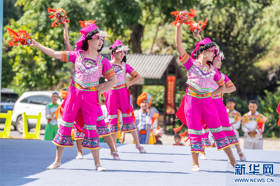9月13日,在贵州省毕节市织金县平远古镇活动现场,演员在舞台上表演节目。新华网发(罗大富 摄)