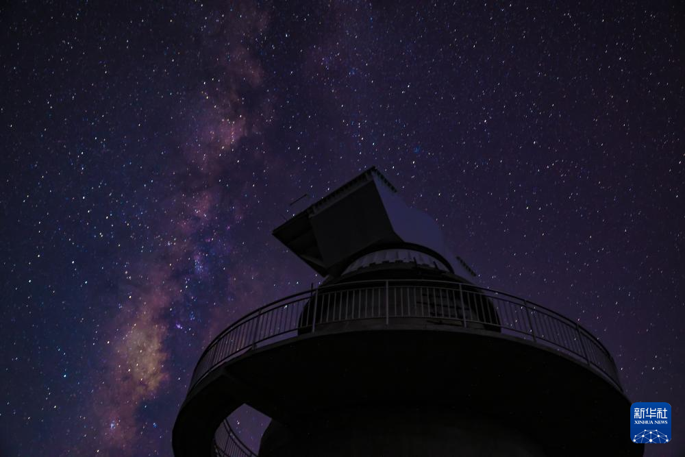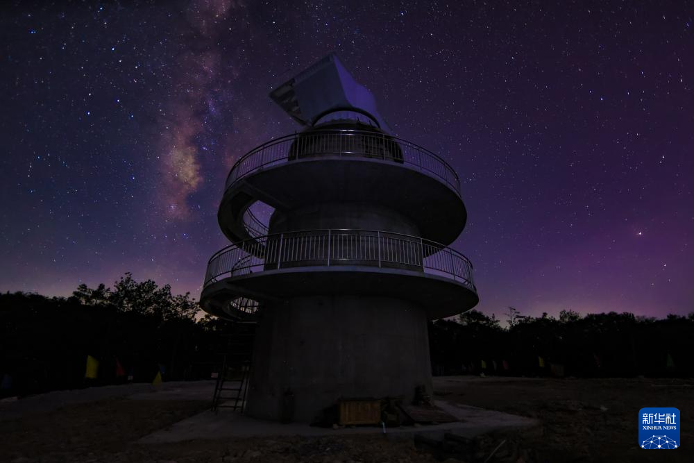 已经完成首吊的核心阵试验样机矗立在星空下(9月25日摄)。新华社记者 刘续 摄