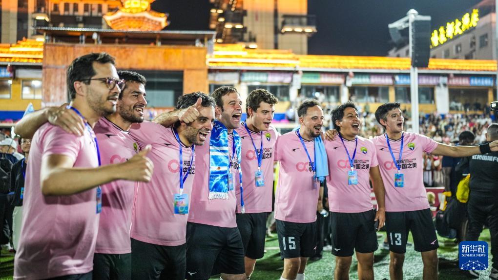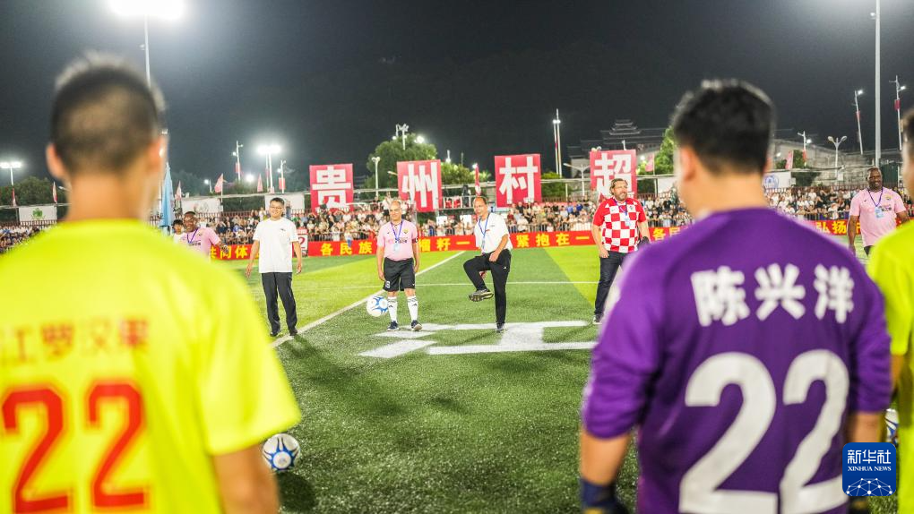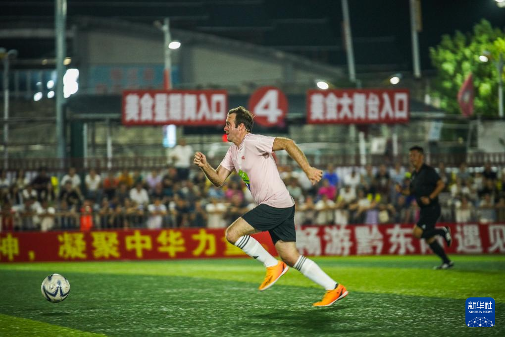 当日,“发现中国之美·相约贵州村超”国际友谊赛在贵州省黔东南苗族侗族自治州榕江县的“村超”足球场举行。24名驻华外交官与当地“村超”球队进行了一场国际友谊赛。