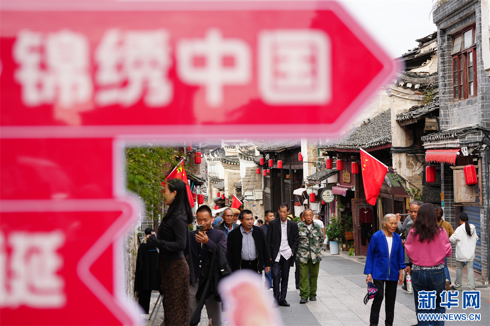 10月3日,游客在贵州省黎平县翘街景区内游玩参观。新华网发(龙建睿 摄)