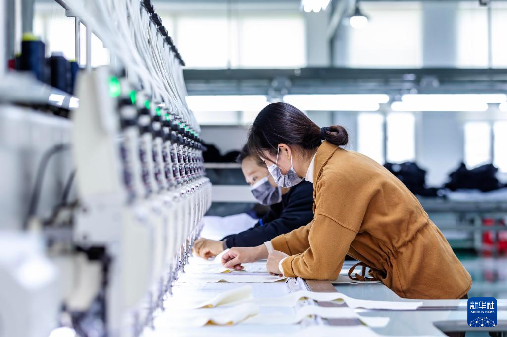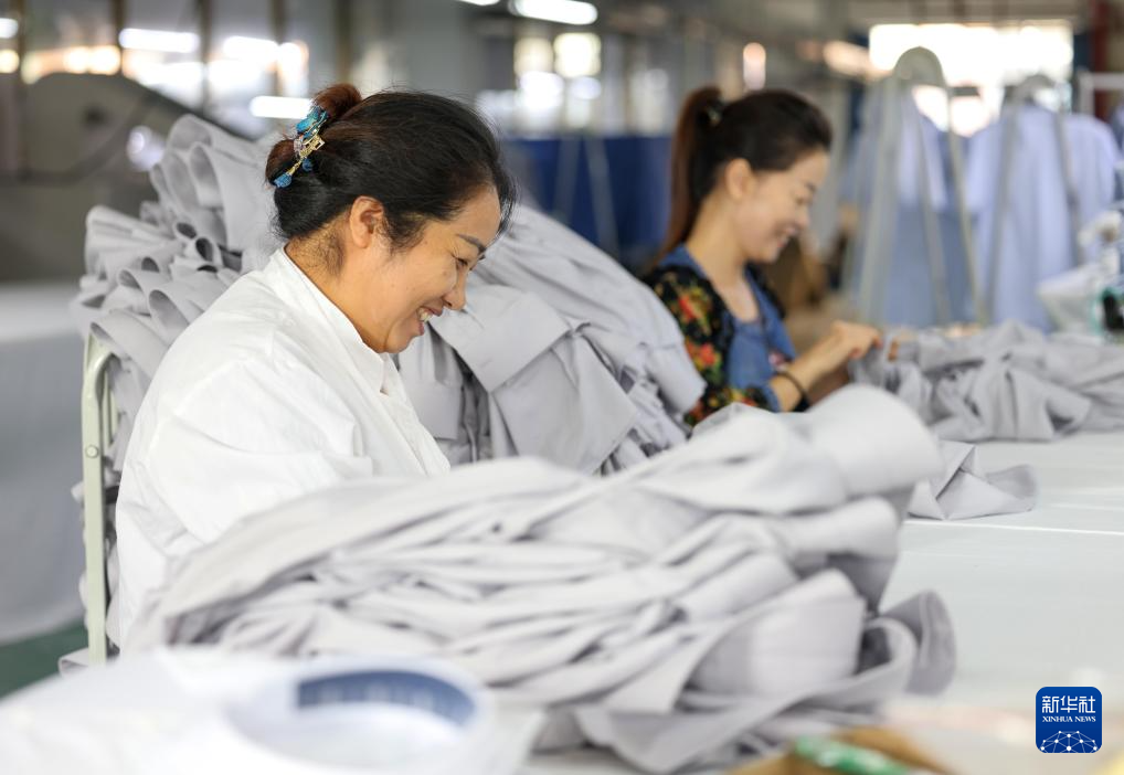 10月8日,贵州省铜仁市玉屏侗族自治县一家服装加工企业的工人在加工服装。新华社发(胡攀学摄)