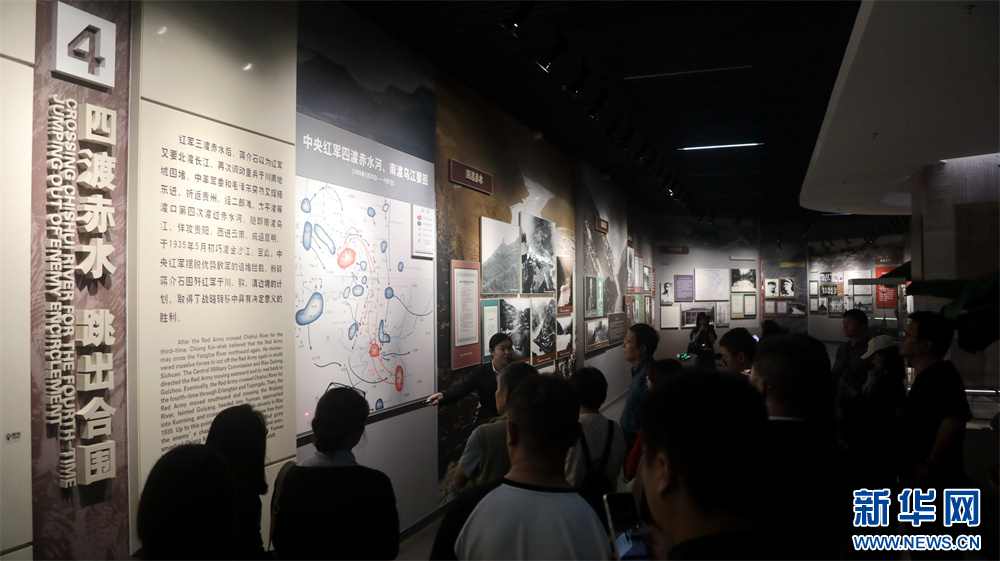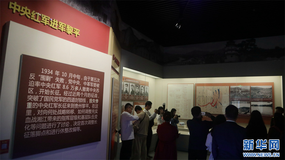 媒体采访团在仁怀市茅台镇“红军长征过茅台陈列馆”参观(10月19日摄)。新华网 周远钢 摄