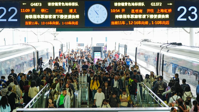 10月23日,遵义市红花岗区第二十小学的学生们结束研学有序返回。新华社记者 陶亮 摄