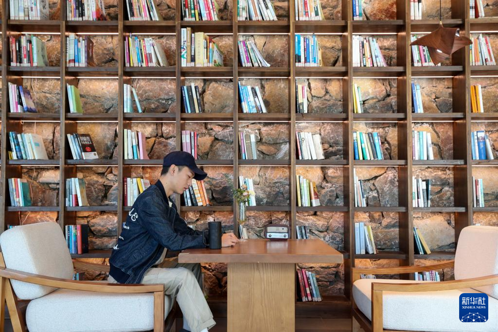 10月24日,一名游客在贵州省开阳县高寨乡牌坊村一家民宿阅读。新华社发(袁福洪 摄)
