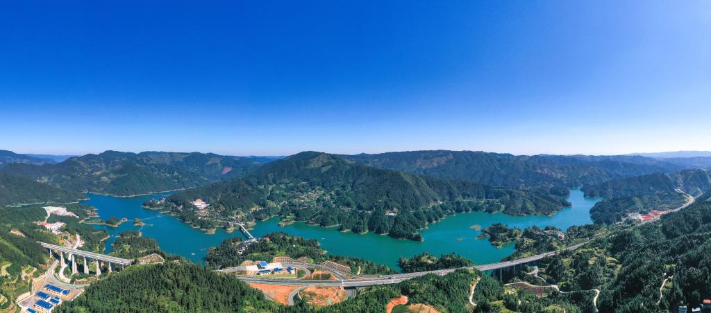 这是10月25日拍摄的贵州剑黎高速南孟溪大桥和南加互通(无人机照片)。