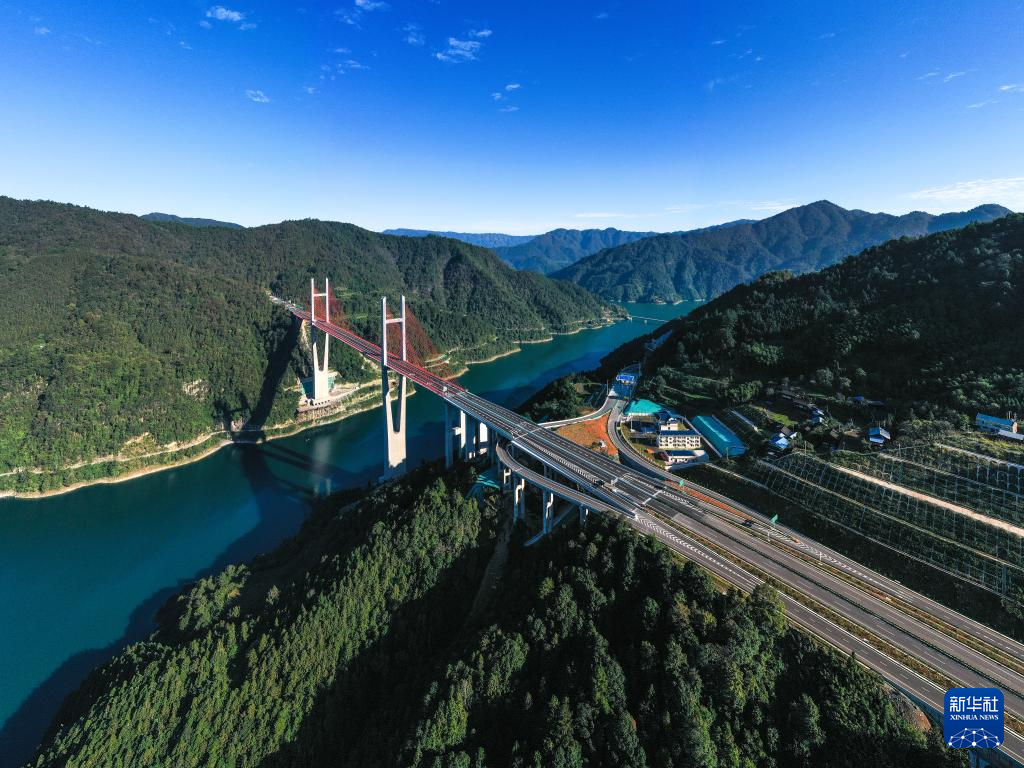 10月25日,车辆在贵州剑黎高速南孟溪大桥上行驶(无人机照片)。新华社记者 杨文斌 摄