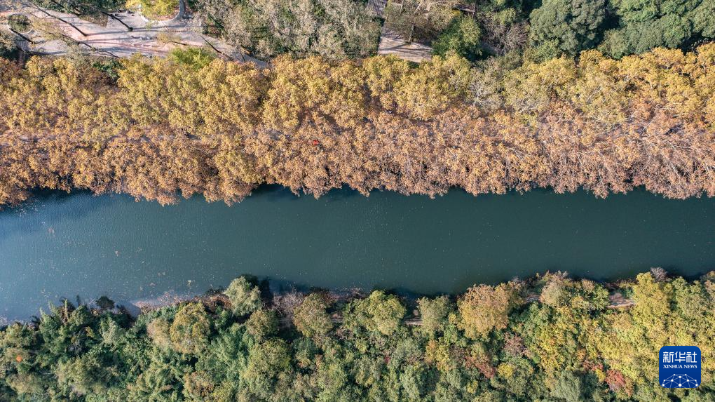 贵阳市花溪国家城市湿地公园黄金大道风景一隅(10月27日摄,无人机照片)。新华社记者 陶亮 摄