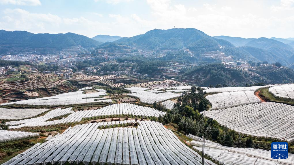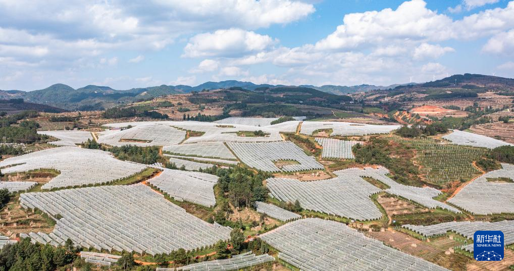 威宁彝族回族苗族自治县黑石头镇雨田果园的苹果基地(10月30日摄,无人机照片)。新华社记者 陶亮 摄