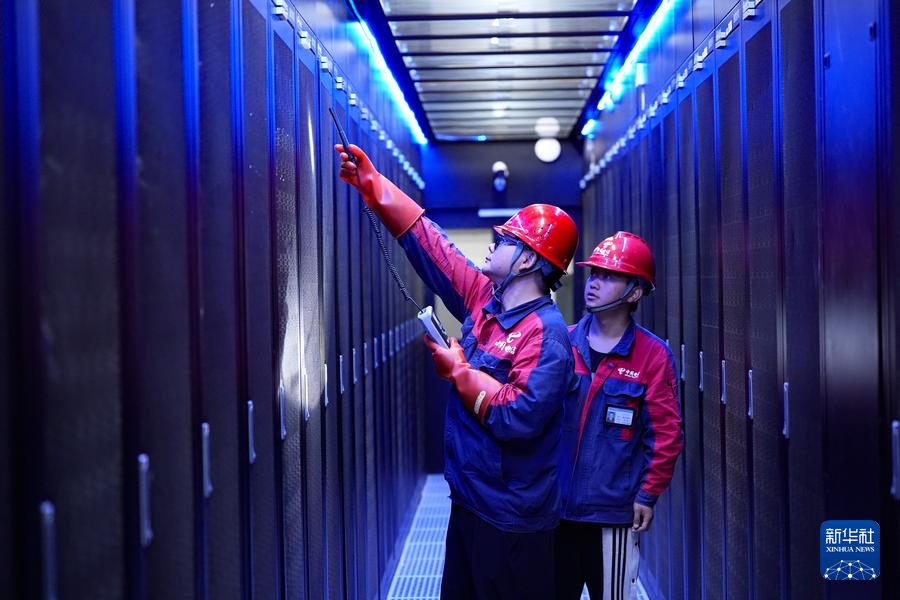 6月14日,工作人员在东数西算(贵州)智算中心内巡检。新华社记者 刘续 摄
