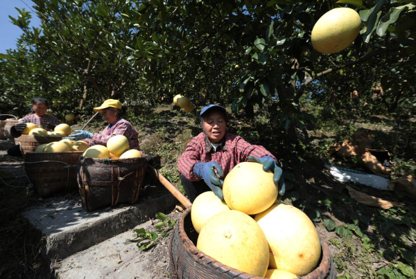 近段时间,贵州省黔东南苗族侗族自治州岑巩县的思州柚陆续成熟,迎来采收季。