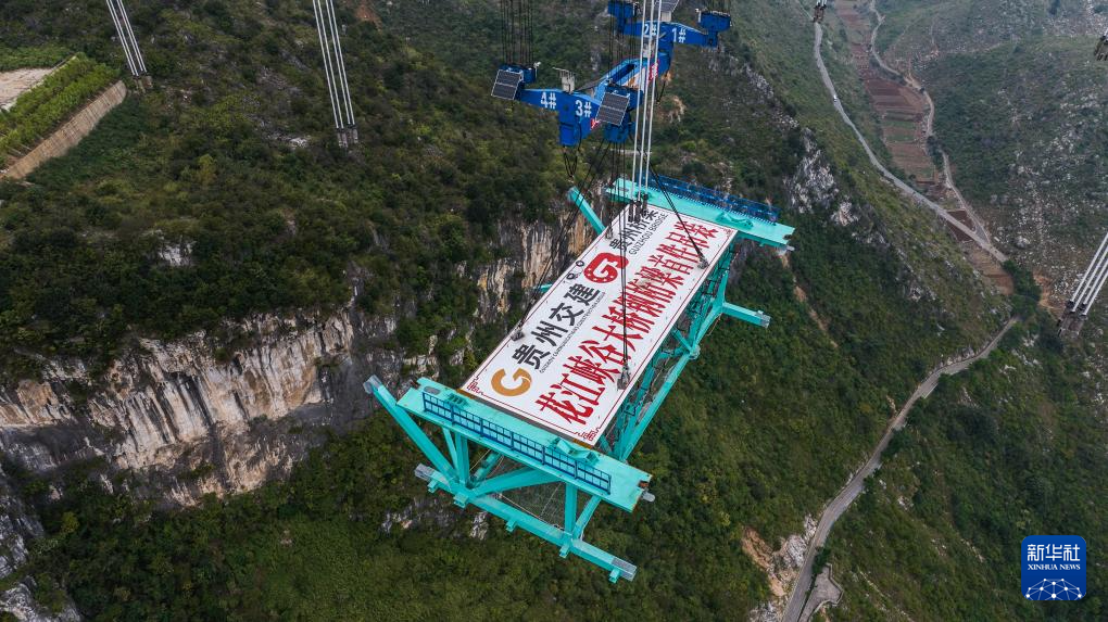 新华社贵阳11月4日电(记者向定杰)4日下午,在建世界最高桥——贵州花江峡谷大桥建设取得重要进展:随着缆索吊机将重约215吨的首件钢桁梁精准吊装至指定位置,大桥施工进入新阶段,为明年通车运营奠定了基础。