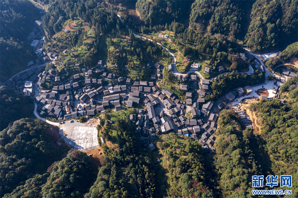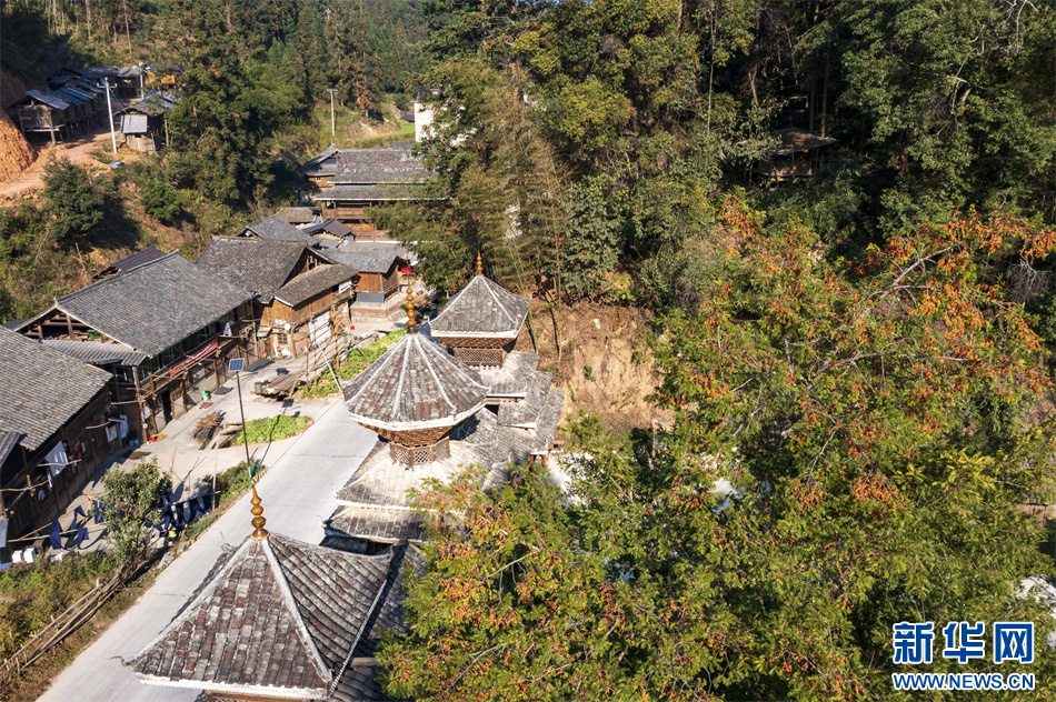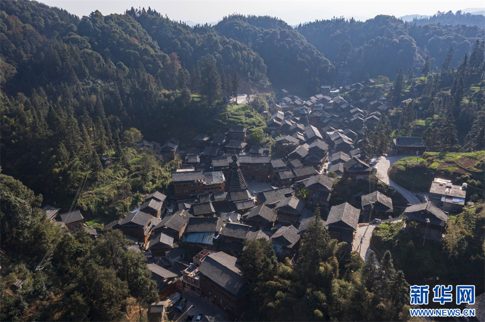 11月11日,拍摄的贵州省从江县谷坪乡银下侗寨(无人机照片)。新华网发(吴德军 摄)