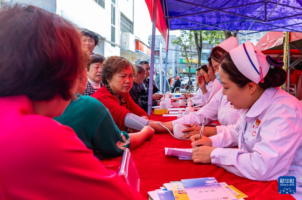 11月14日,医生在贵州省黔西市人民医院东桥路院区为群众进行义诊。新华社发(范晖 摄)