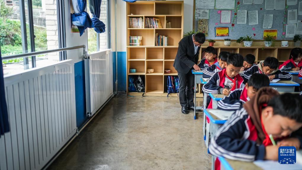 在供暖的亮岩小学,老师指导孩子学习(11月20日摄)。新华社记者 陶亮 摄