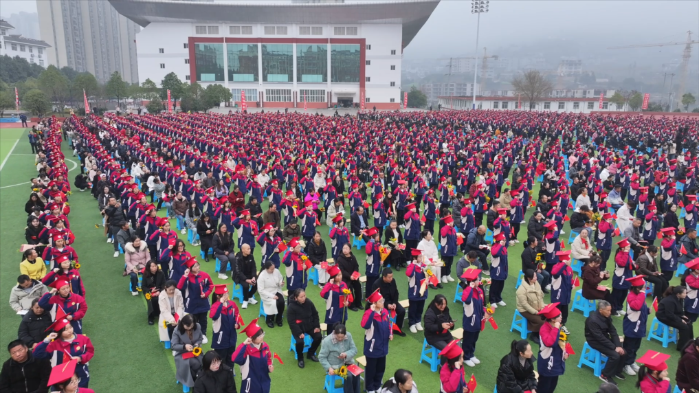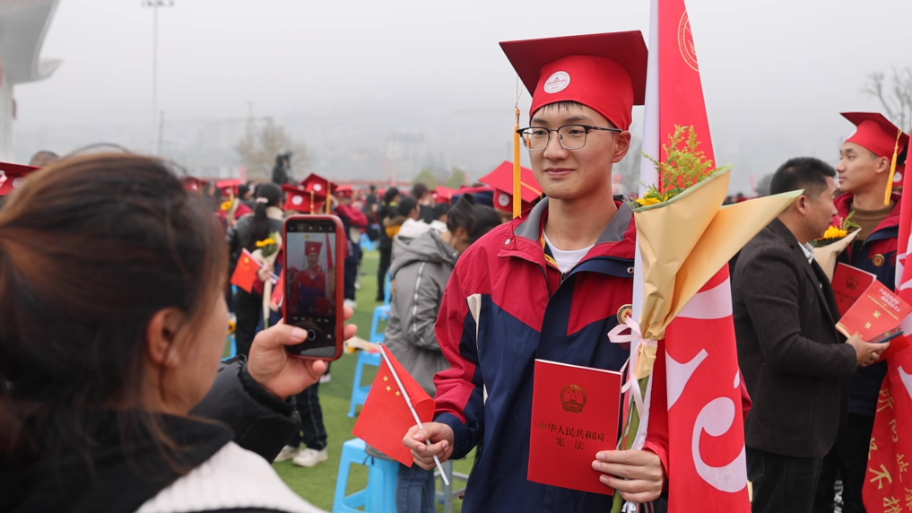 活动现场,家长们为学生佩戴成人帽、成人徽章,并赠送宪法读本作为成人礼物。1400余名高三学生在一场特别的成人仪式中弘扬宪法精神,致敬美好青春。