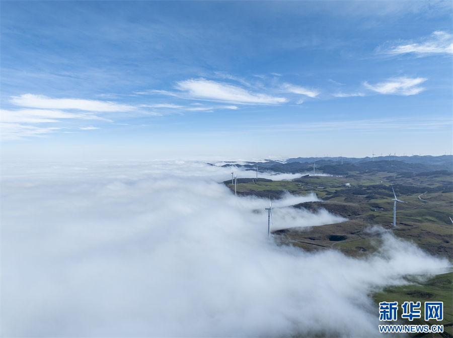 12月9日,贵州省毕节市威宁彝族回族苗族自治县雪山镇灼甫草场浓雾奔腾。新华网发(管庆巍 摄)
