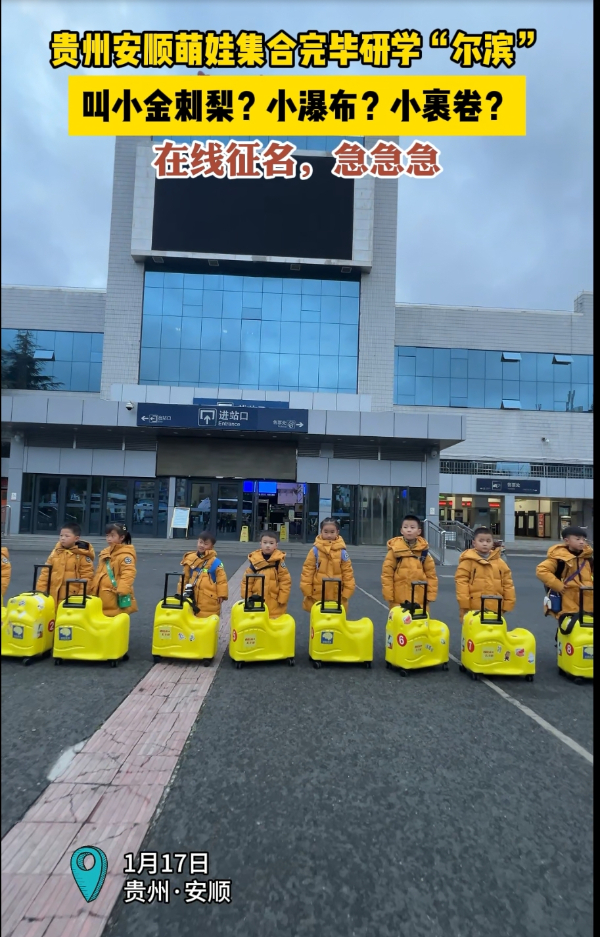 2024年1月17日,“西虹市・天下游”抖音号、微信视频号分别发布“小金刺梨出发哈尔滨”视频。视频中,来自安顺的小朋友,将前往哈尔滨旅游。该条视频在抖音号、视频号分别获得110万、17.9万播放量,网友纷纷点赞,留言挤满评论区。