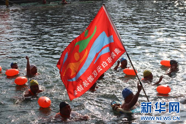 图为代表队进行冬泳表演。新华网发(李洪珊 摄)
