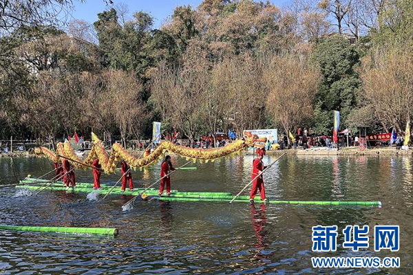 活动现场,独竹漂表演率先登场。表演者们赤足站立于一根直径大约15厘米的竹竿上,在水面上轻盈滑行,独特的民族风情扑面而来,紧接着威风锣鼓声轰然作响,激昂鼓点回荡两岸,与人群欢呼声交织。