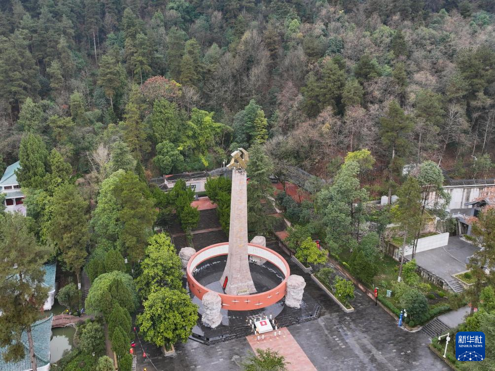 这是位于遵义市内的红军山烈士陵园(2025年1月9日摄,无人机照片)。新华社记者 刘续 摄