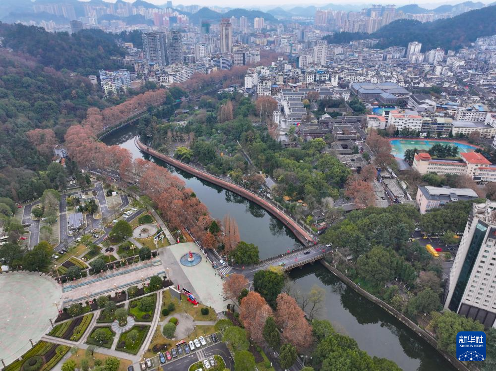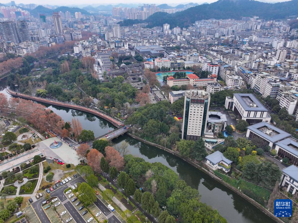 湘江河流经遵义市城区(2025年1月9日摄,无人机照片)。新华社记者 刘续 摄