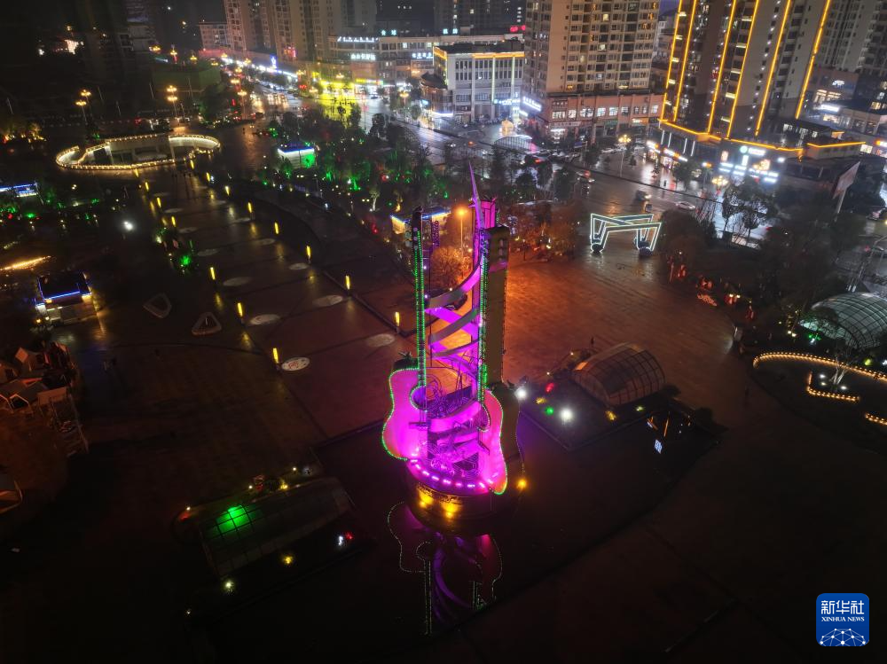 这是位于遵义市正安县的吉他文化广场(2025年1月8日摄,无人机照片)。新华社记者 刘续 摄