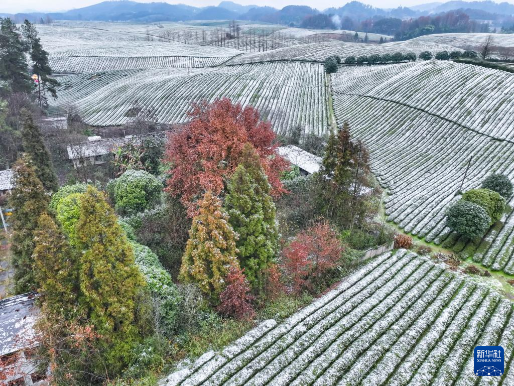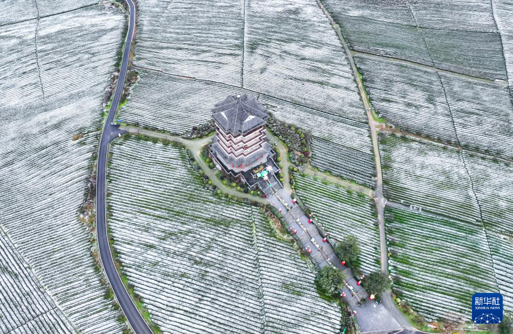 这是雪后的遵义市湄潭茶海景区(2025年1月9日摄,无人机照片)。新华社记者 刘续 摄
