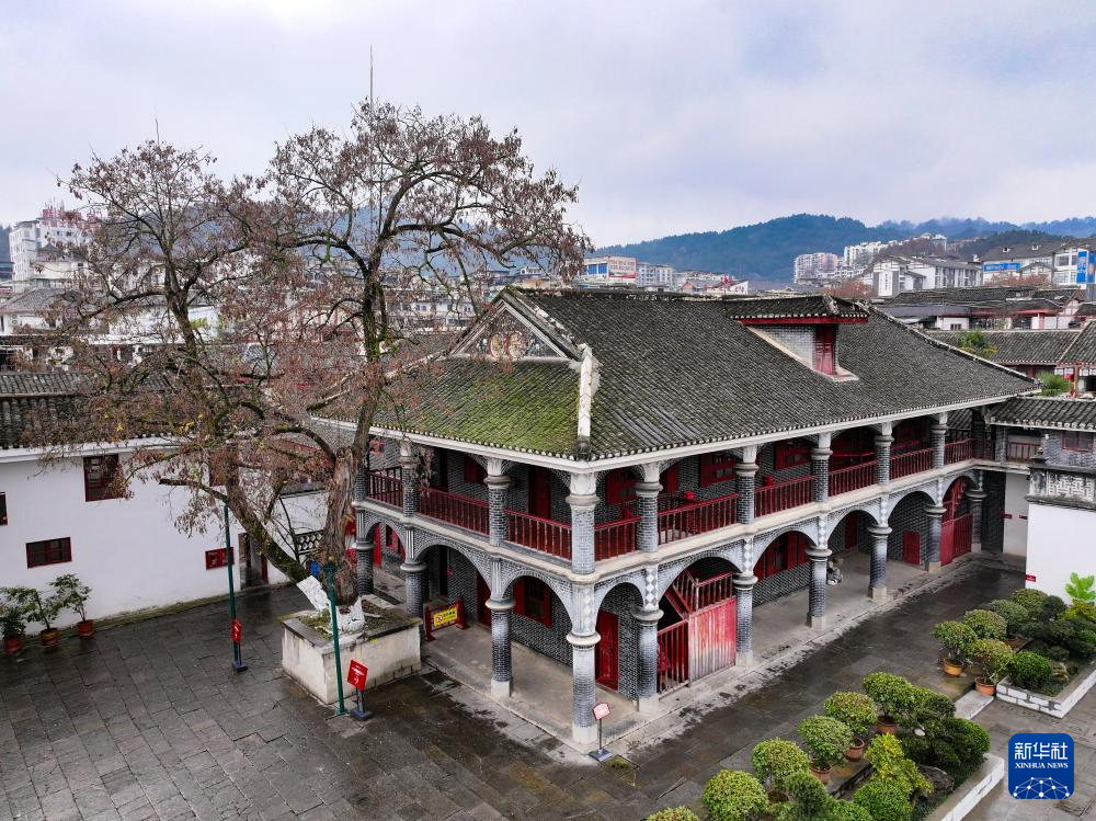 这是位于遵义市内的红军总政治部旧址(2025年1月9日摄,无人机照片)。