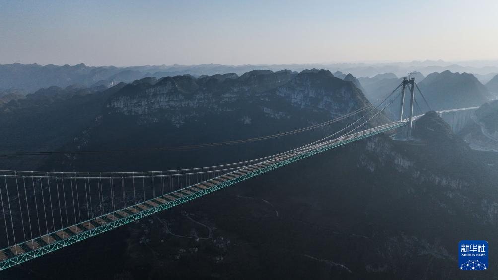 这是1月14日拍摄的贵州六安高速公路花江峡谷大桥(无人机全景照片)。新华社记者 杨文斌 摄