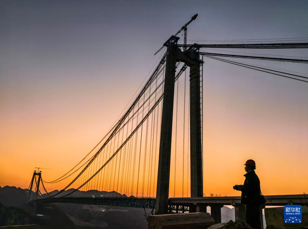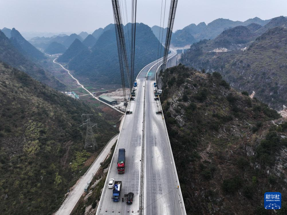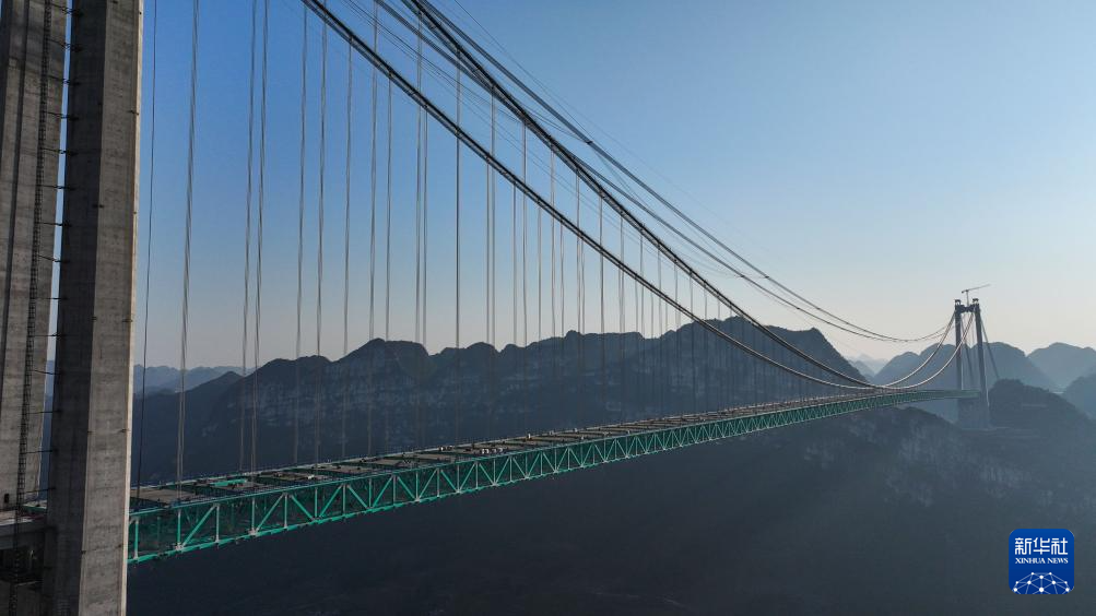 花江峡谷大桥因跨越被誉为“地球裂缝”的花江大峡谷而得名,是贵州省六枝至安龙高速公路的关键控制性工程,自2022年开工建设,预计2025年建成。大桥为钢桁梁悬索桥,全长2890米,桥面距水面垂直高度达625米,建成后将成为新的世界第一高桥。