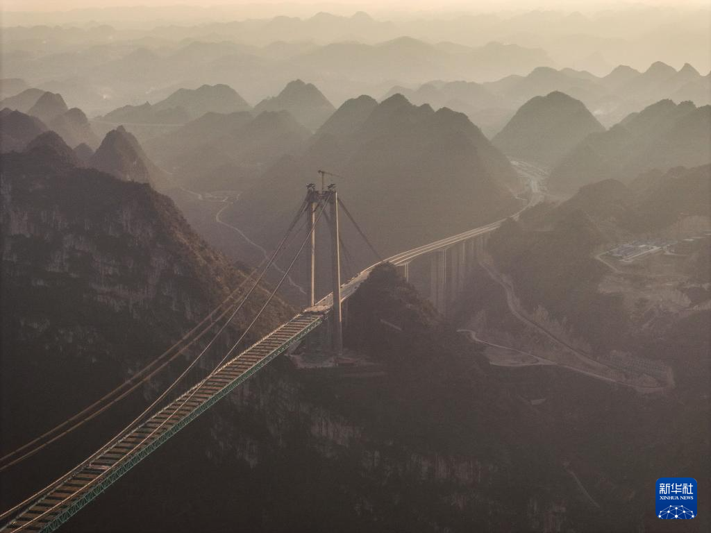 目前,由贵州桥梁集团承建的贵州六安高速花江峡谷大桥全桥93个节段钢桁梁全部拼装完成,大桥即将迎来合龙。
