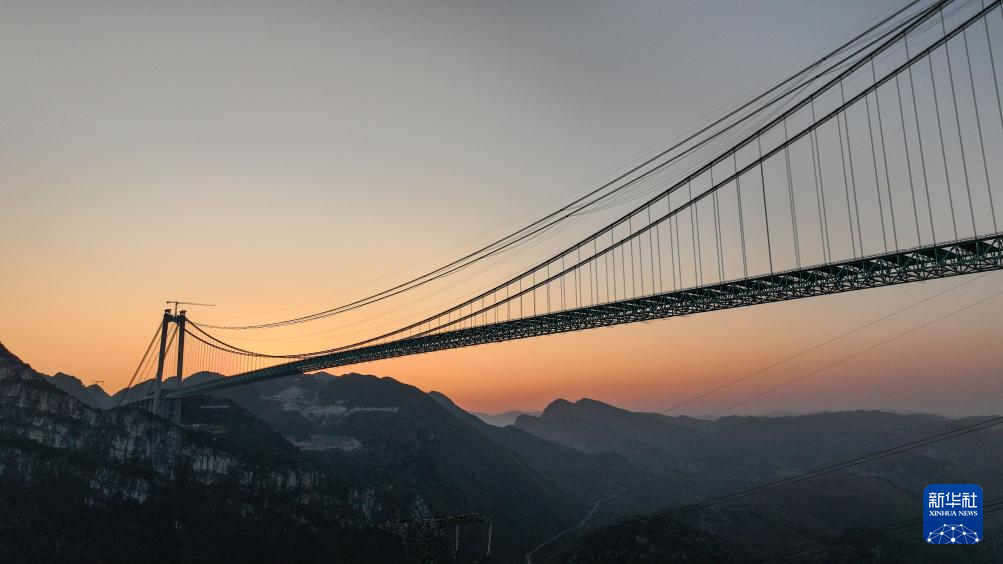 夕阳下的贵州六安高速公路花江峡谷大桥(1月13日摄,无人机照片)。新华社记者 杨文斌 摄