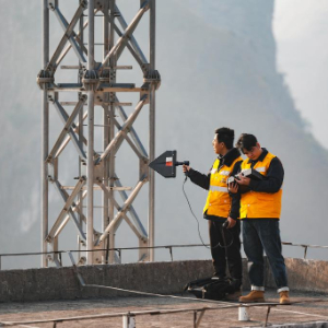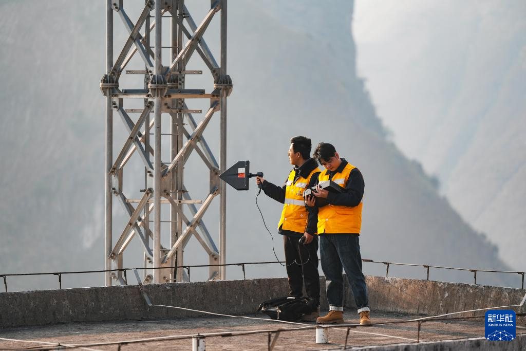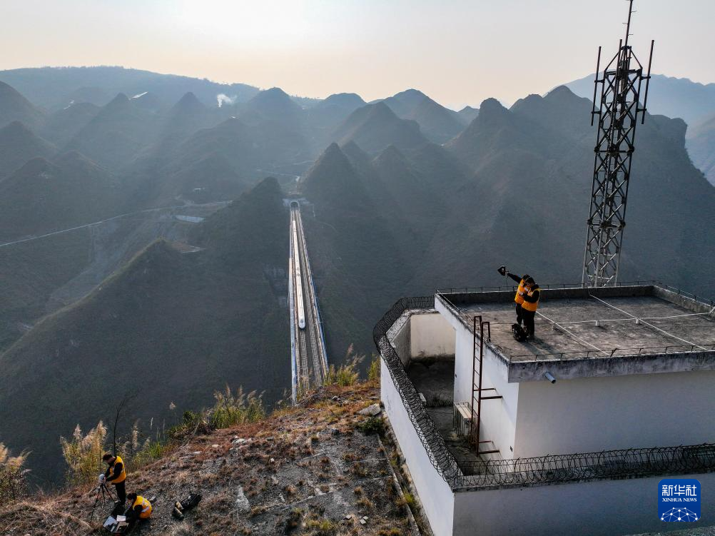 1月15日,贵阳电务段铁路通信工在沪昆高铁北盘江特大桥旁基站搜寻信号干扰源。新华社发(龙建睿 摄)