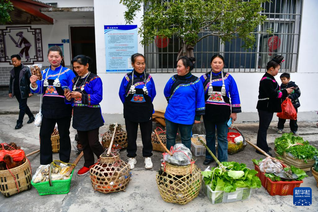 1月18日,在沪昆铁路六个鸡火车站,铁路工作人员与村民交流当天售卖的农产品情况。新华社记者 杨文斌 摄