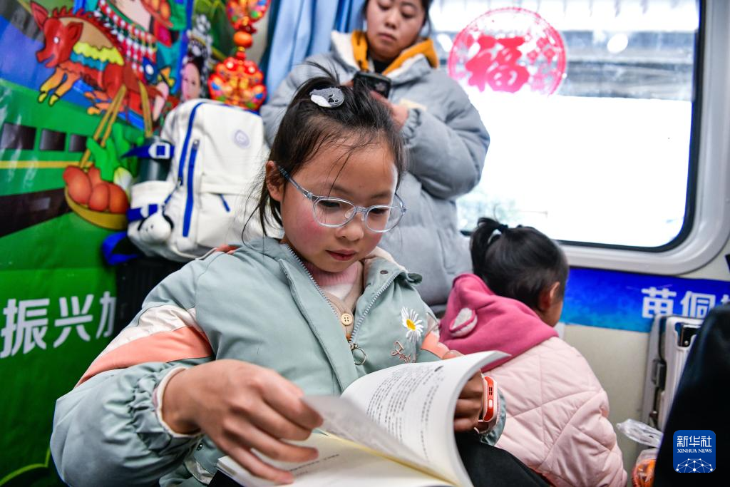 1月18日,一名小女孩在5640次列车上看书。新华社记者 杨文斌 摄
