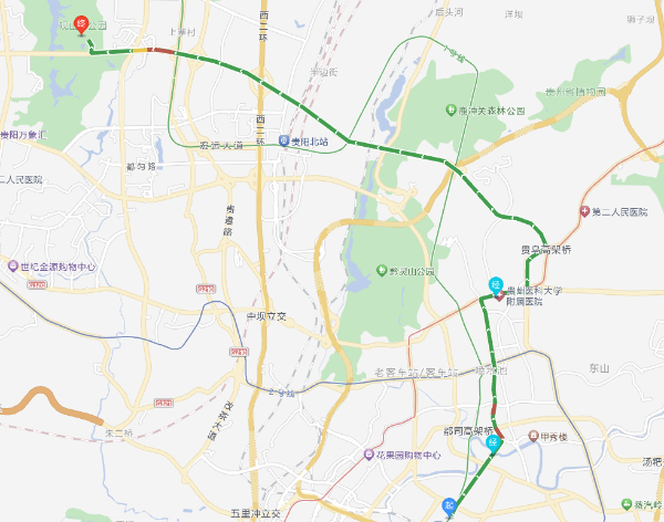 线路走向:花果园双子塔——惠隆路——五里冲路——甲秀南路——西二环——观山东路——民族大联欢广场