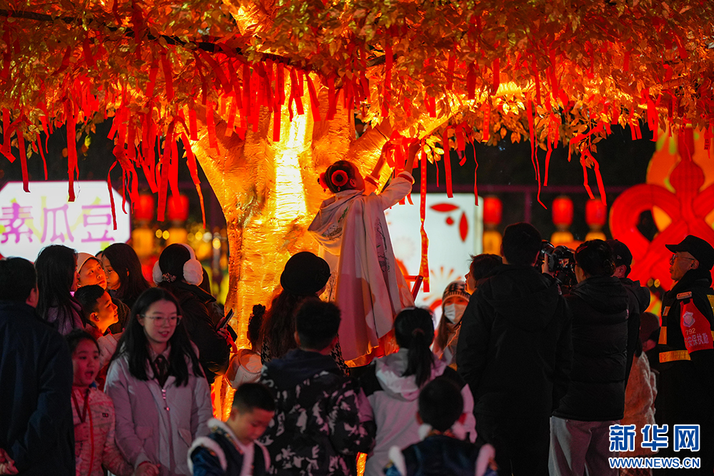 1月22日,演艺人员在2025贵阳观山湖灯会庙市现场表演。新华网发(张晖 摄)