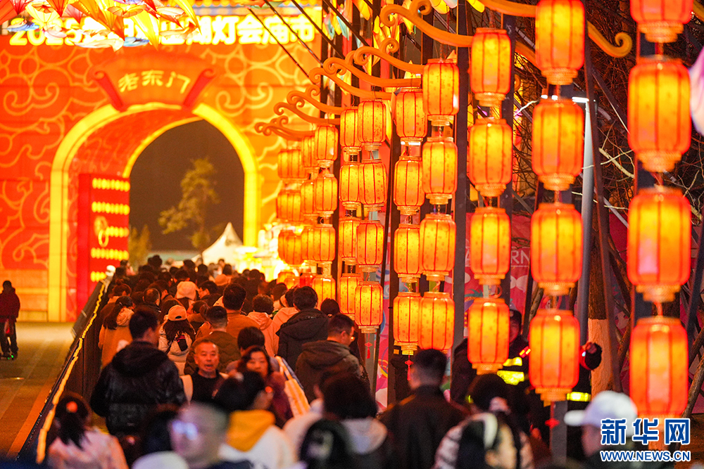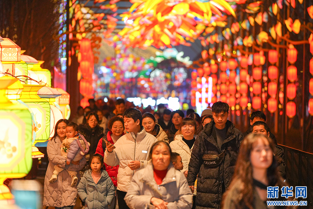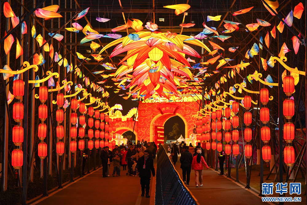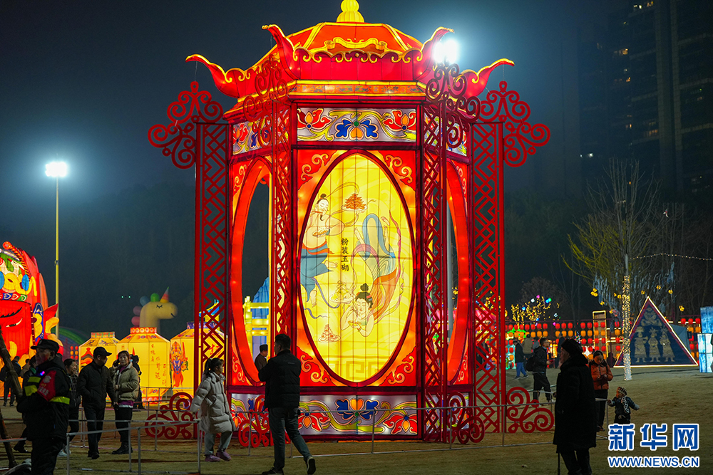 1月22日,人们在2025贵阳观山湖灯会庙市参观。新华网发(龙建睿 摄)