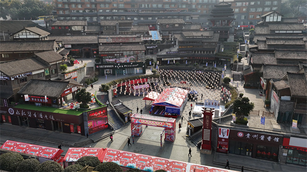 另一边,茅台镇酒文旅活动也是精彩纷呈。在茅台会客厅广场,主打“新潮”“年味”的集市热闹非凡,游客们在这里看展演、品美食,打卡拍照,丰富着茅台镇的酱香文化内涵与游客体验。“来到这边感觉这边的人比较热情,这里的风景比较漂亮,酒文化让我感触很深厚,感觉整个人陶醉在酒当中。”游客周洪说。