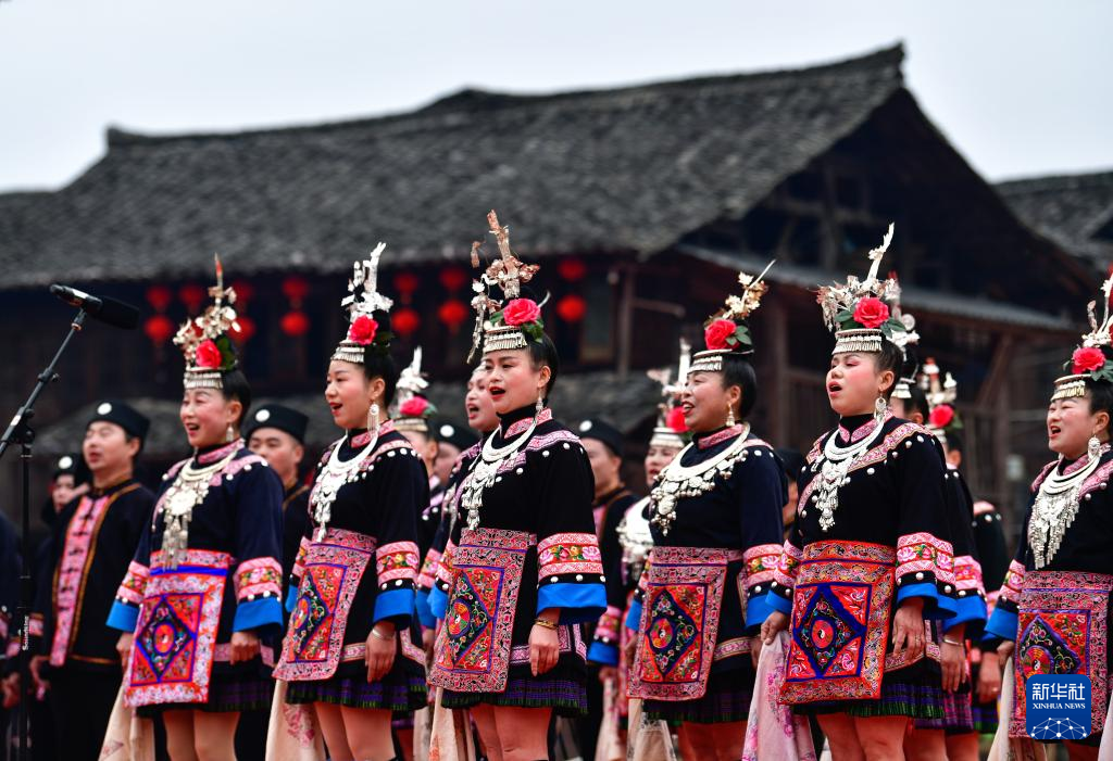 2月11日,少数民族同胞在贵州省锦屏县隆里古城举办的“村晚”活动中演唱民族歌曲。新华社记者 杨文斌 摄